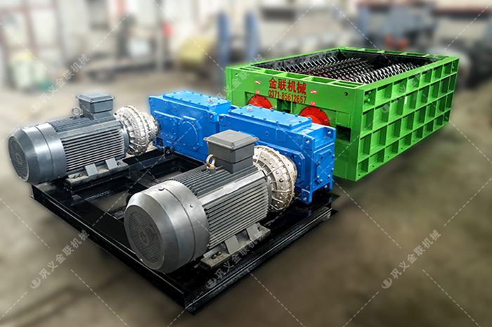 分級式齒輥破碎機由兩臺電動機將動力經減速器減速后分別驅動兩平行安裝的齒輥相向旋轉,當物料落入分級破碎機雙輥之間時,帶有螺旋齒牙或刀形齒板首先將物料篩分,小于排料粒度的顆粒直接通過而不需要破碎,進入排料溜槽,在垂直應力或剪切力的共同作用下,大塊物料受齒輥齒牙的劈裂、剪切,拉伸被破碎,從排料口排出。